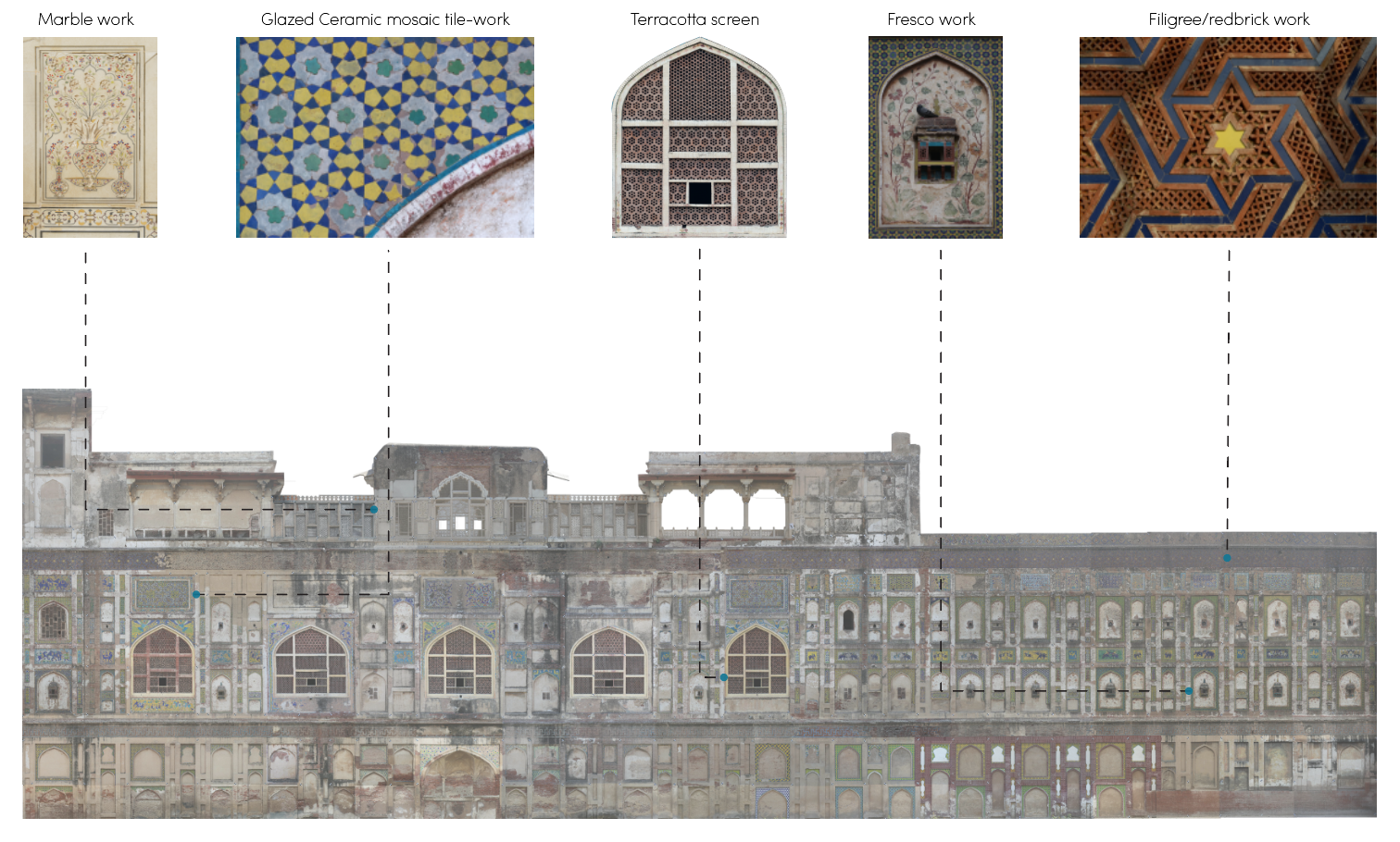 One of the most significant projects that I worked on was the Picture Wall, part of the Lahore Fort complex. It stretches over 400 feet and is decorated with some of the most intricate mosaic tile work from the Mughal era. Our team was tasked with documenting and preparing a conservation plan for a section of this wall as part of a multi-year heritage revitalization program.