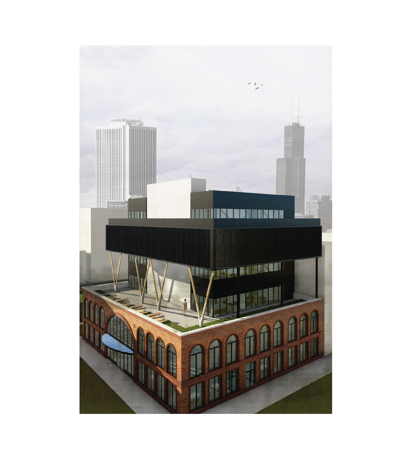 This project as part of the post-professional architectural bridging program at TMU, involved reimagining a fictitious heritage building within an urban context, transforming it into a contemporary mid-rise mixed-use development. The existing concrete structure was preserved and extended vertically with four new levels in heavy timber construction, emphasizing material contrast and contextual sensitivity. The final proposal demonstrated a balance between conservation and innovation, maintaining the historic facade while introducing modern timber architecture and a rooftop terrace to enhance urban livability.
